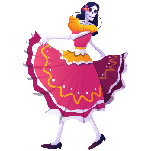 La Catrina is a female skeleton dressed in the fashion of early 1900s high-society women, created by Mexican lithographer and illustrator José Guadalupe Posada. Originally, Posada used the image to satirize contemporary figures, turning them into skeletons as a form of social commentary. Today, La Catrina has become an iconic symbol in Día de los Muertos decorations and celebrations.