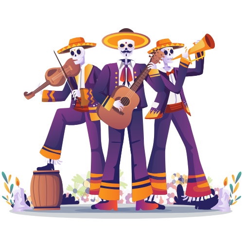 “Calacas” is a Mexican Spanish slang term for skeleton, and they are central to Día de los Muertos decorations. The phrase “La Calaca” is sometimes used to personify death itself.